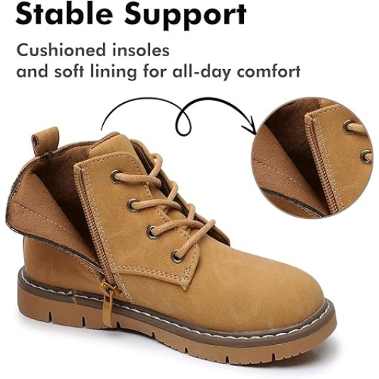 Stable Support: Engineered with cushioned insoles and a soft lining, these boys' ankle boots provide comfort and support. Whether walking or running, your toddler will experience lasting ease and stability all day long.